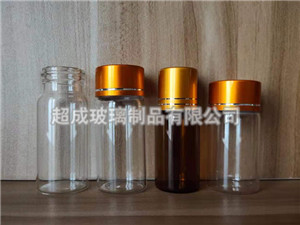 药用玻璃瓶生产方式为模制,材质为钠钙玻璃,颜色为棕色。瓶口为螺口,螺纹口螺纹清晰、饱满、圆润美观;瓶口圆整度好,口面平整,密闭性能好,与瓶盖配合密封性好,可配螺纹口铝盖、塑料盖、丁基垫片、硅胶垫片等。适用于药品、口服液及保健品的盛装。
